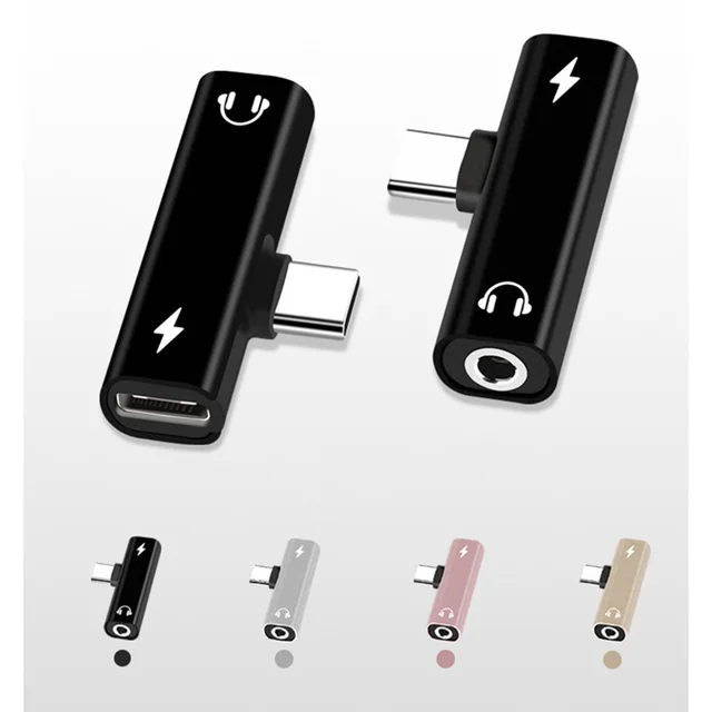 2 en 1 Tipo C a conector de 3,5mm convertidor de carga de auriculares Adaptador de Audio USB tipo C para Xiaomi 6 Huawei P10 amigo 20 tipo C teléfonos