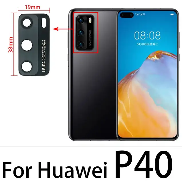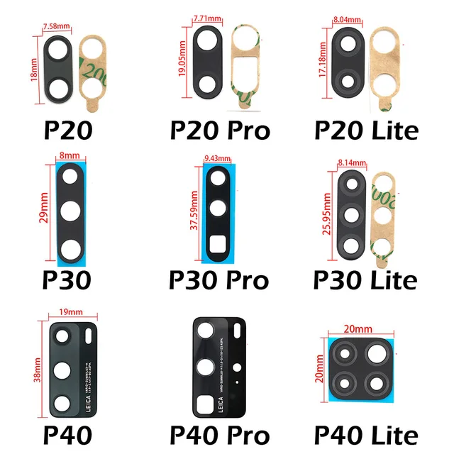 2 unids/lote para Huawei P30, P40, P30 Lite, P20 Pro, cámara trasera, cubierta de lente de cristal con etiqueta adhesiva, pieza de repuesto