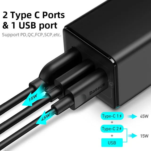 65W ceguera de inserción de doble puerto utilizar cualquier puerto, carga rápida de todos modos