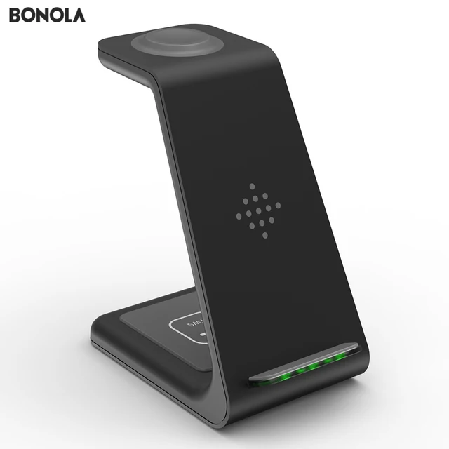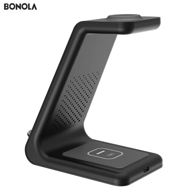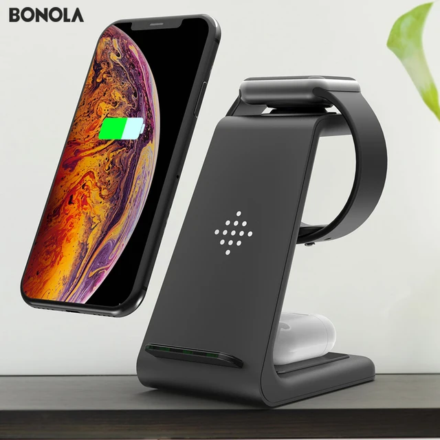 Estación de carga inalámbrica Bonola Qi 3 en 1 para iPhone11Pro/Xr/Xs/AirPods Pro/iWatch5 4 cargador inalámbrico para SamsungS10/capullos/reloj