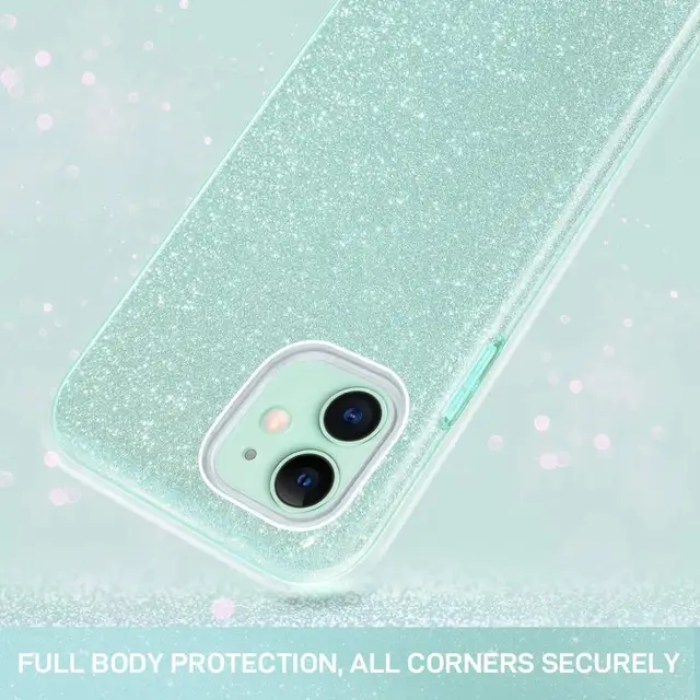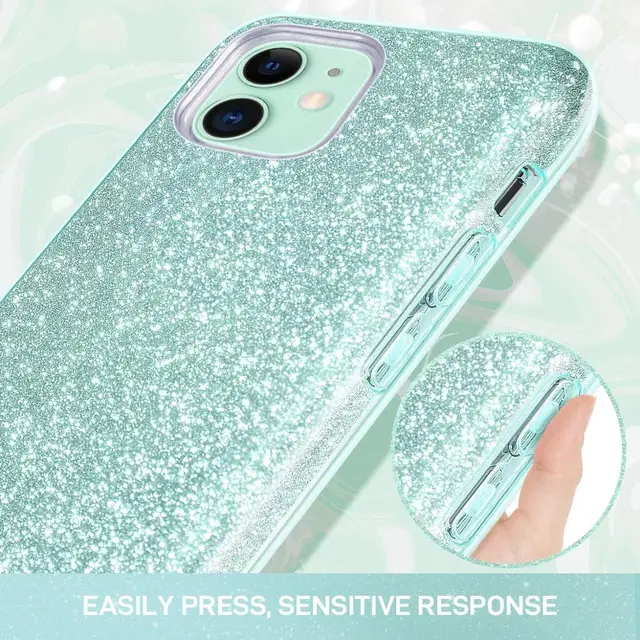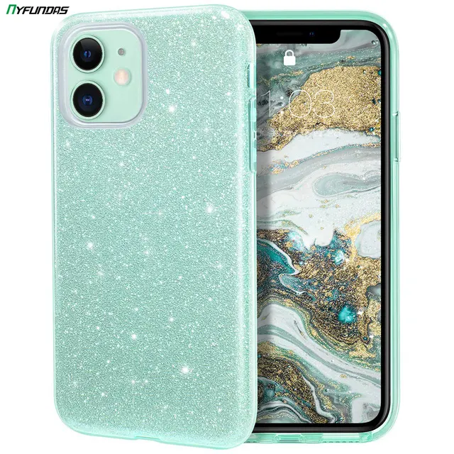 Funda de teléfono con purpurina para iPhone 11 Pro Max 12 X XR XS 8 Plus 7 SE 2020 iPhone11 ostentosa funda híbrida brillante de lujo verde menta