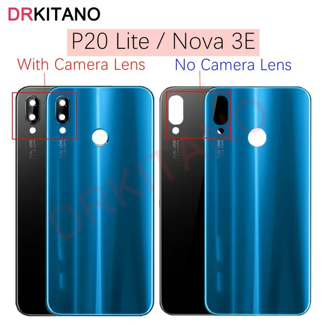 Funda trasera para Huawei P20 Lite, cristal de batería + lente de cámara NOVA 3E, carcasa de puerta trasera, Panel para Huawei P20 Lite